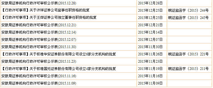 安徽证监局2015年监管信息公开工作年度报告