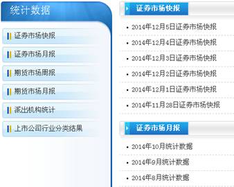 在“统计数据”栏目发布《证券市场快报》243期、《证券市场月报》12期、《上市公司行业分类结果》4期、《期货市场周报》52期、《期货市场月报》12期。