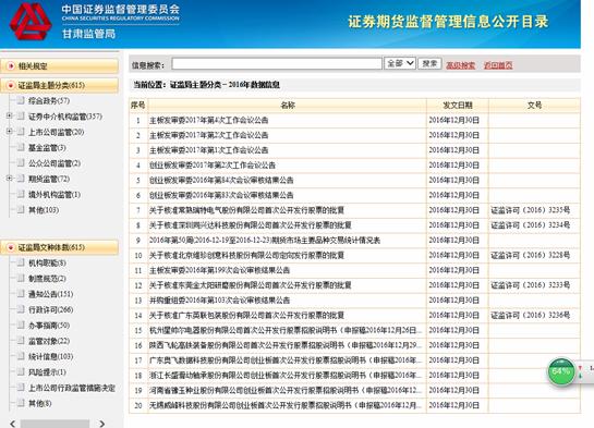 | 名 称 | 甘肃证监局2016年政府信息公开工作年度报告 | ||