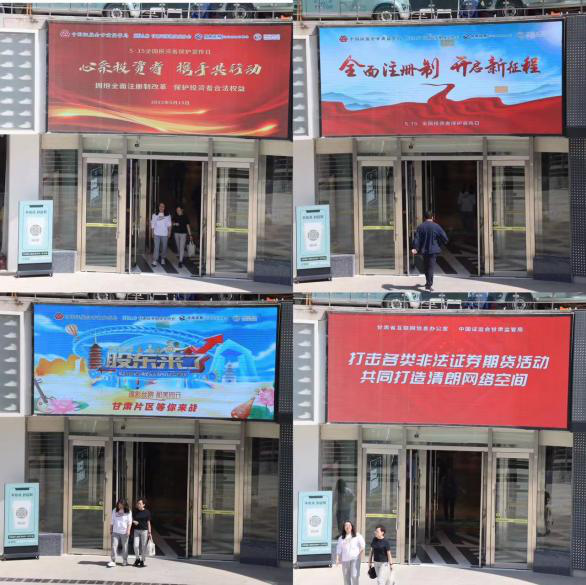 充分发挥各种宣传平台和渠道作用,5·15宣传走到身边、走进屏幕、走上云端。一是联合肃证券期货业协会,制作专题电子宣传海报,在市区繁华商圈LED屏幕滚动播出,吸引过往行人驻足观看,营造活动当天浓厚的宣传氛围。二是指导辖区华龙证券投资者教育基地以全面注册制与理性投资为主题,开设《倡导理性投资把握市场脉络》的专题讲座,同步线上直播,期间线上线下气氛热烈,形成“联动效应”,受到投资者广泛好评,本次讲座共覆盖7000多人次三是组织各经营机构通过进校园、进社区、两微一端、“双网三屏”(互联网、移动互联网、电脑屏、手机屏、户外大屏)等方式自主开展各种宣传,形成投保宣传矩阵。