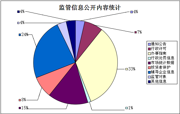 2015年,我局在中国证监会政府信息公开平台上共公开监管信息84条,具体包括:通知公告3条、行政许可6条、办事指南28条、行政处罚信息1条、市场统计数据13条、投资者保护信息7条、辅导企业信息20条、监管对象名录3条,其他类信息3条。