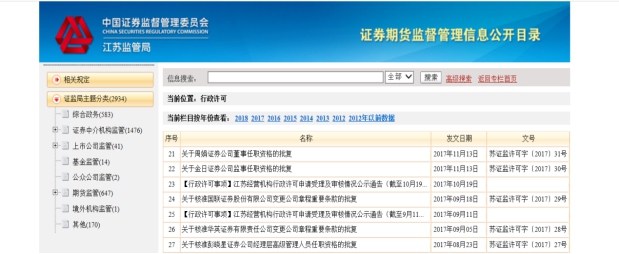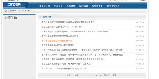 2017年,江苏证监局通过互联网站对外主动公开政府信息391条,主要涵盖以下方面: