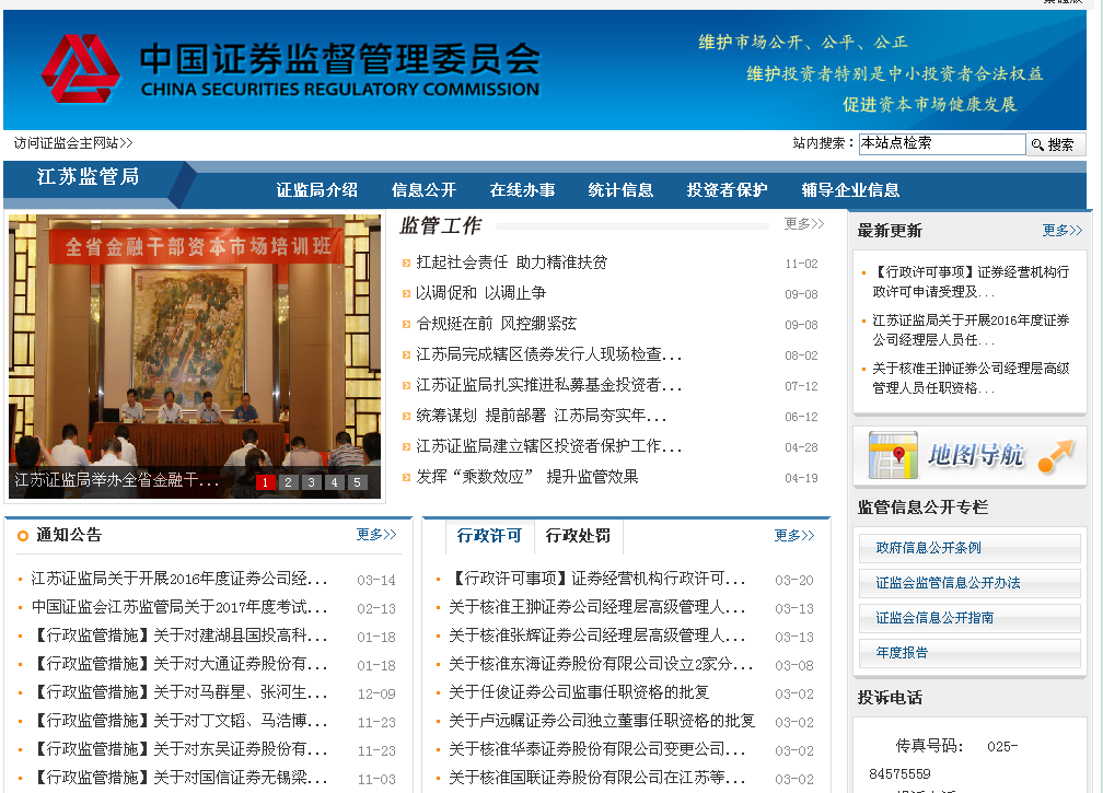 江苏证监局2016年政府信息公开工作年度报告