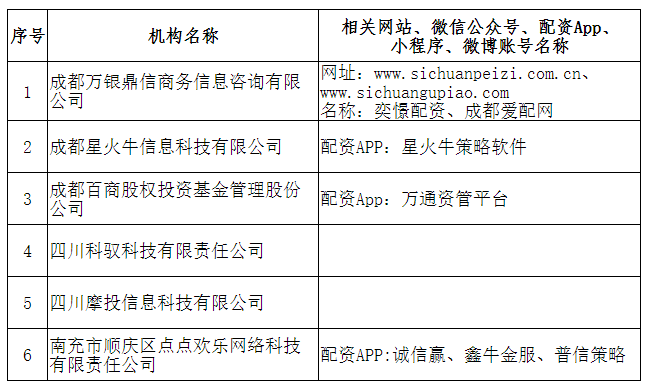 四川证监局公示辖区二〇二二年度不具有证券期货经营资质的机构名单(第一批)