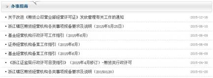 在“办事指南”栏目发布备案及审批类事项等工作指引7项。其中,我局对照证监会2015年以来取消、调整的备案事项,共清理取消机构期货类备案事项84项,同时简化报送方式,取消31项书面报送和36项电子报文系统报送要求。目前我局保留备案类事项103项,均有证监会规范性文件及法律法规作为依据,取消幅度达44%。